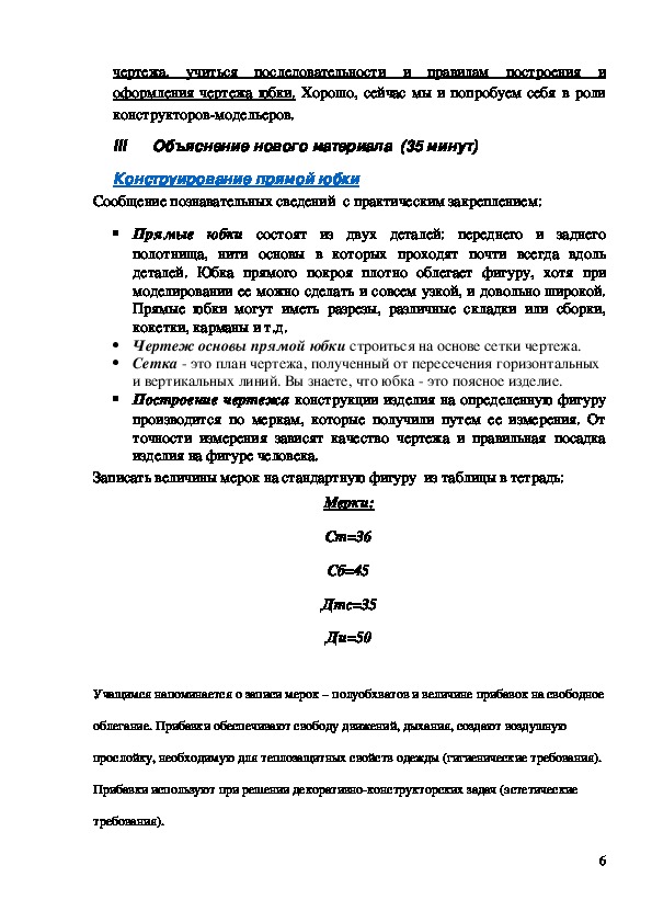 Тема изучается в 6 классе в рамках модуля «Изготовление женской поясной одежды», выполняется расчет конструкции и построение чертежа прямой юбки.