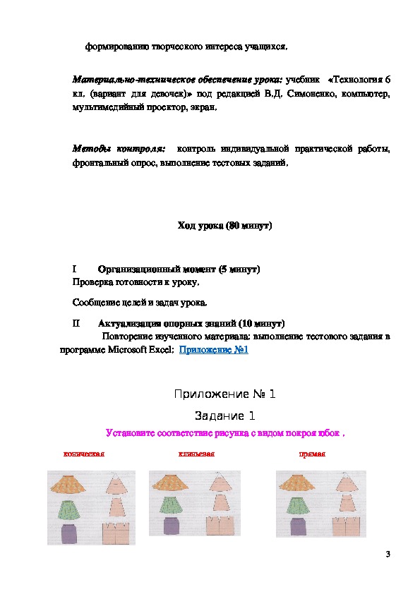 Задание Установите соответствие рисунка с видом покроя юбок .