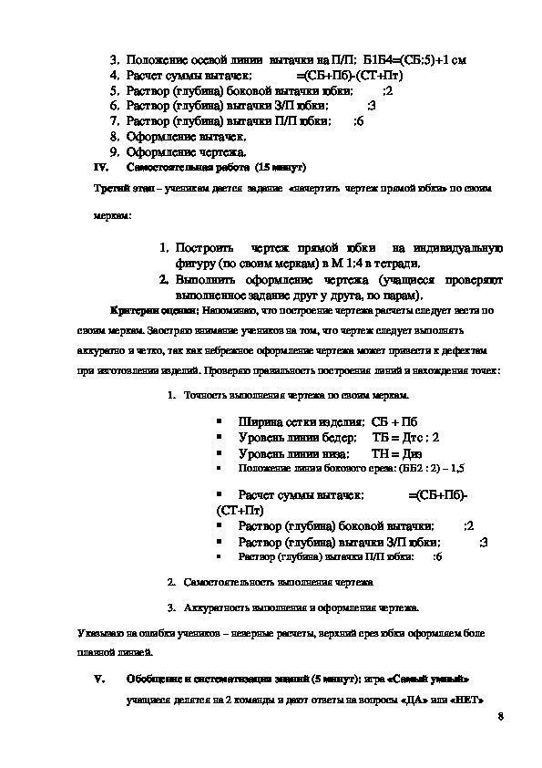 Третий этап – ученикам дается задание «начертить чертеж прямой юбки» по своим