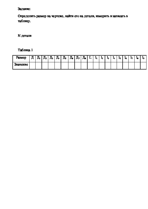 ЗначениеТаблица действительных размеров деталей для проверки результатов учащихся