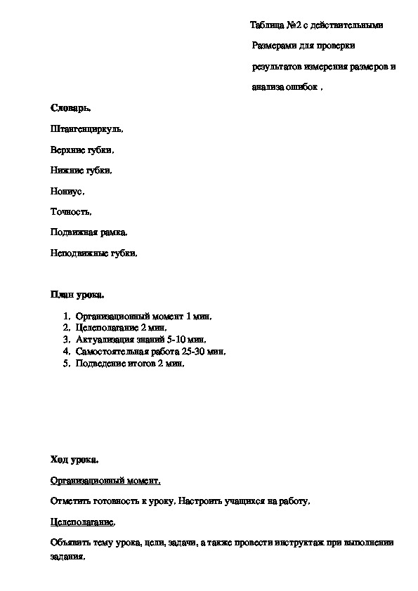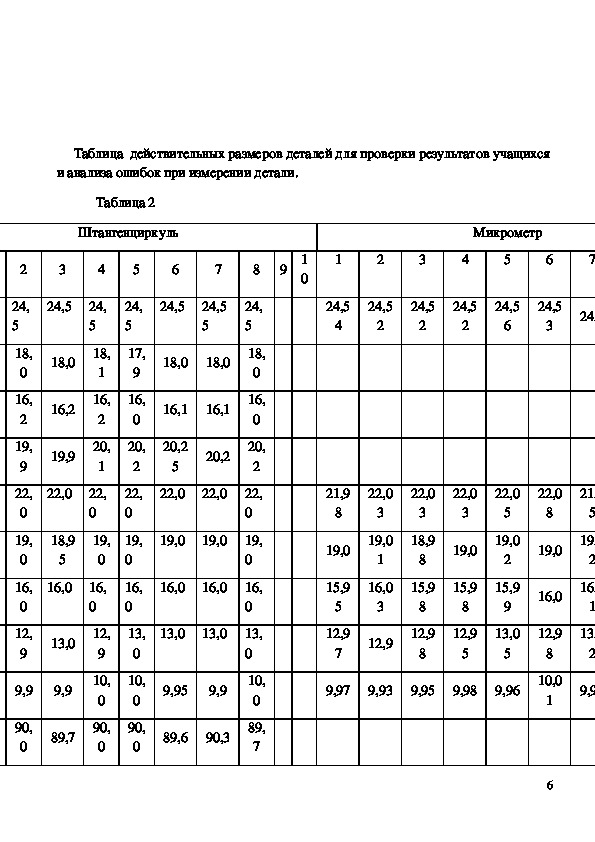 таблице №2 свои результаты измерения с действительными размерами деталей