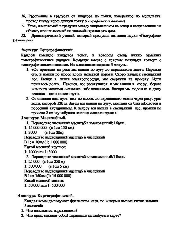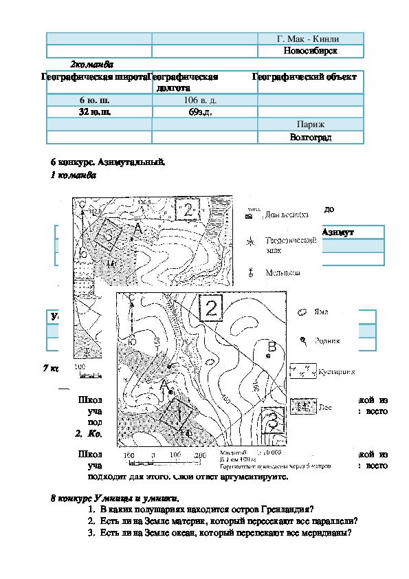 топографическими знаками. Команды вместе с текстом получают конверт с