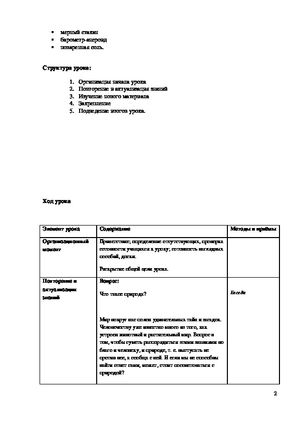 • познакомить учащихся с методами изучения природы, их использованием в практической деятельности.