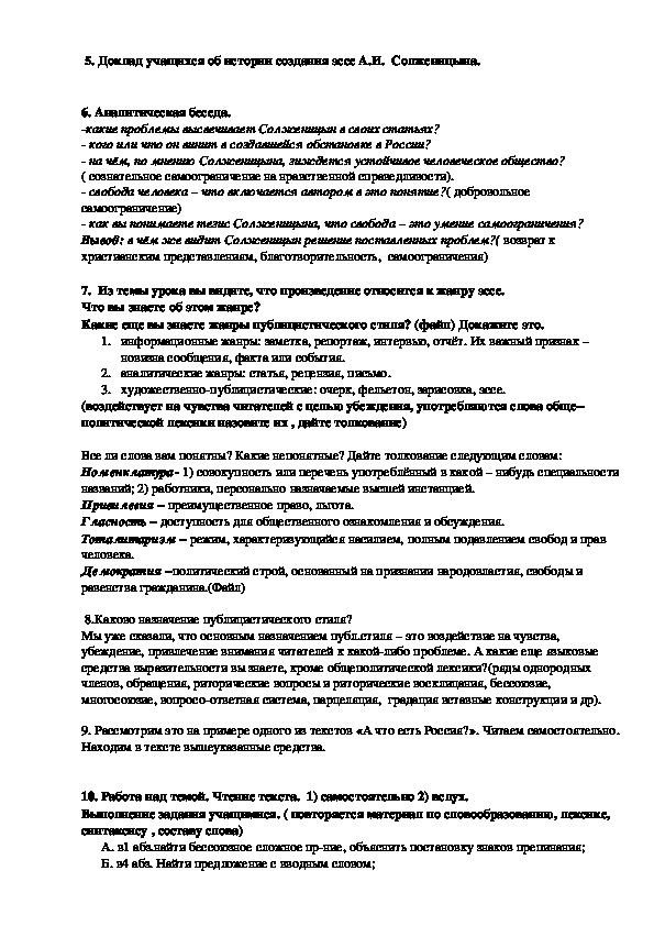 что вы читали у Солженицына?5. Доклад учащихся об истории создания эссе А.И. Солженицына.