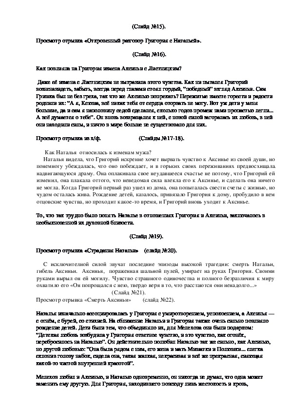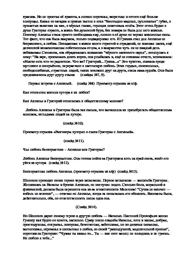 Урок на тему: «Какое место в жизни Григория Мелехова занимает любовь?»