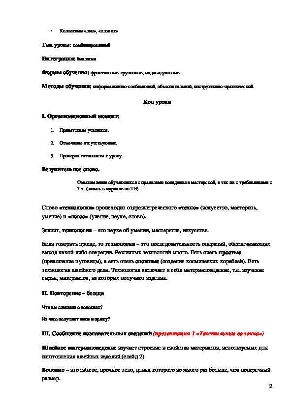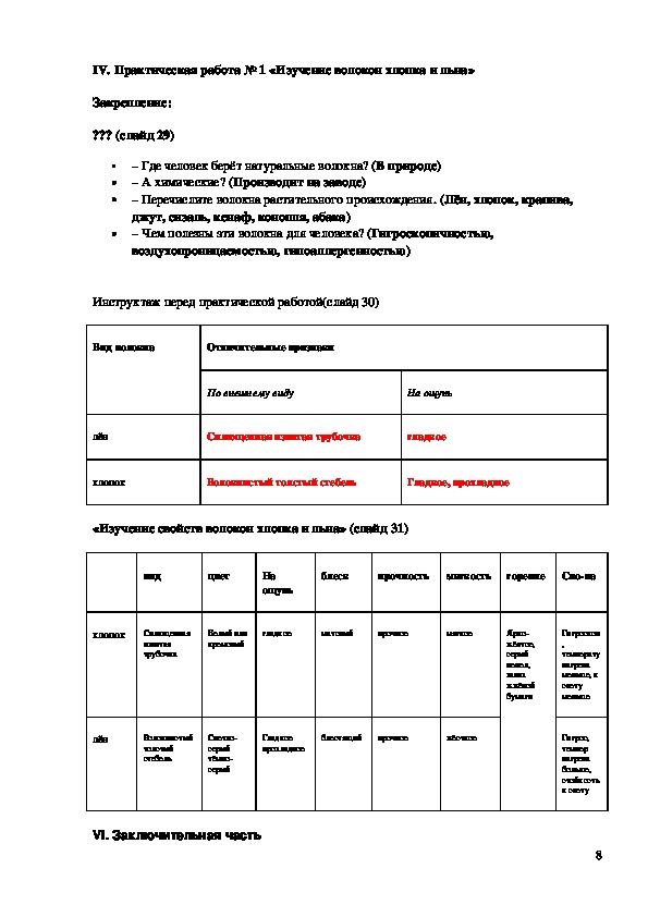 7IV. Практическая работа № 1 «Изучение волокон хлопка и льна»