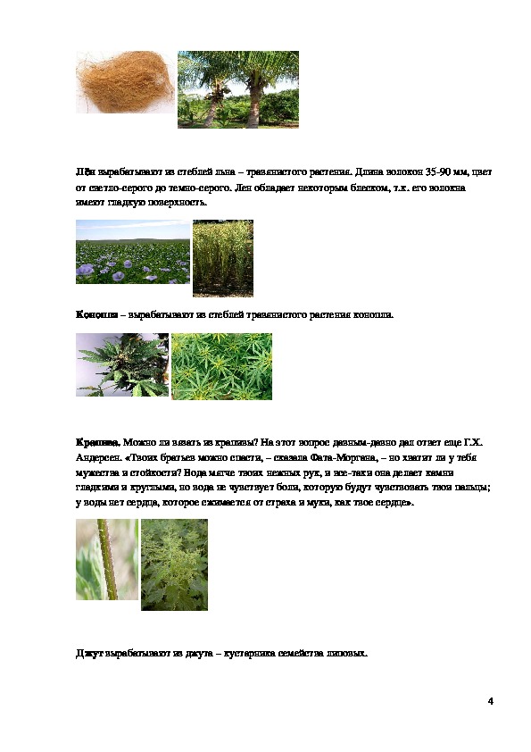 Конопля – вырабатывают из стеблей травянистого растения конопли.