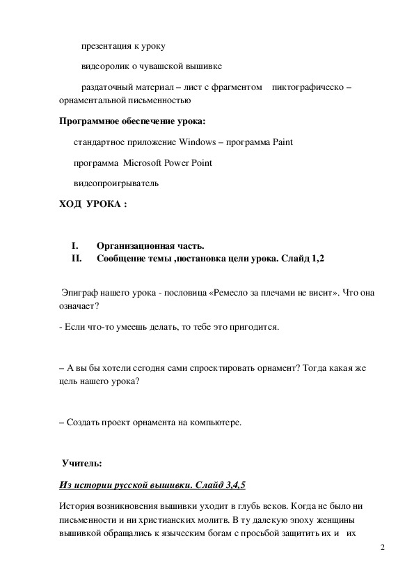 Обучающие ознакомить учащихся с историей возникновения вышивки, с
