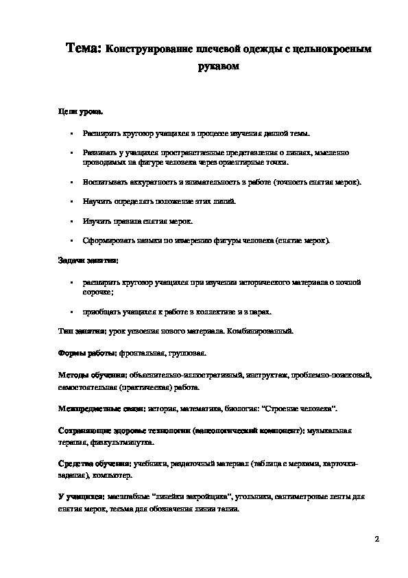 Тема: Конструирование плечевой одежды с цельнокроеным рукавом
