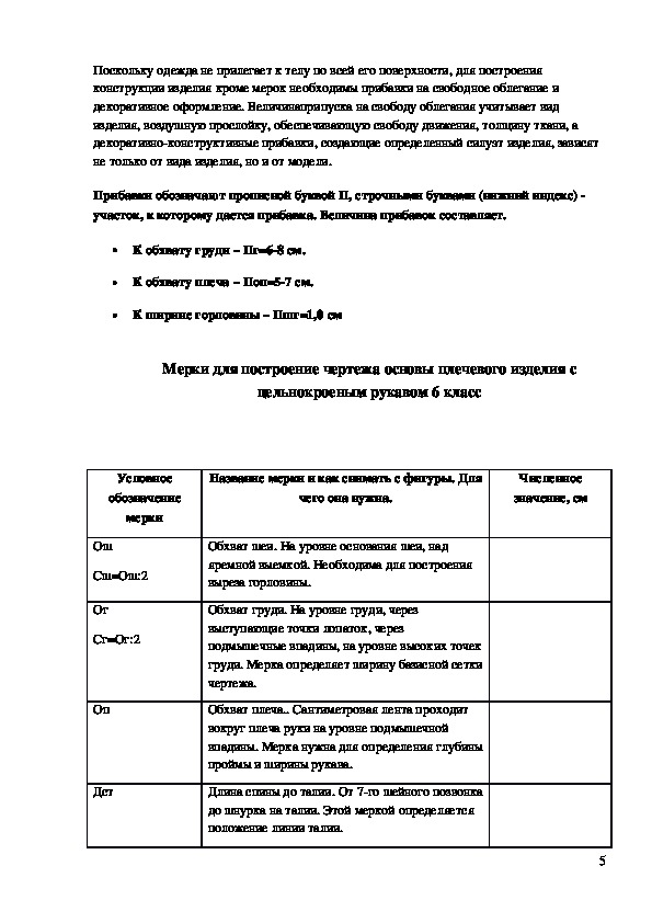 конструкции изделия кроме мерок необходимы прибавки на свободное облегание и