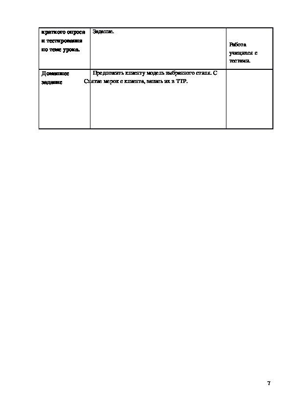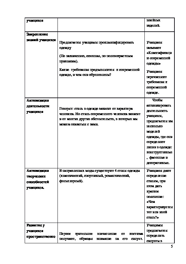 • Закрепление умения читать чертеж плечевого изделия. Закрепление умения формулировать требования к изделию, определению стиля и силуэта в одежде. Закрепление умения выдвигать разнообразные идеи по моделированию, комментировать и оценивать их, выбирать лучшие.