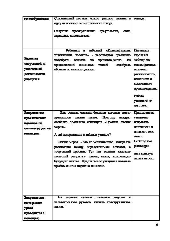 Расширение знаний учащихся об особенностях и линиях фигуры, правилах снятия