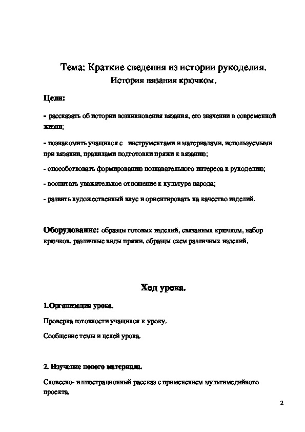 Тема: Краткие сведения из истории рукоделия. История вязания крючком.