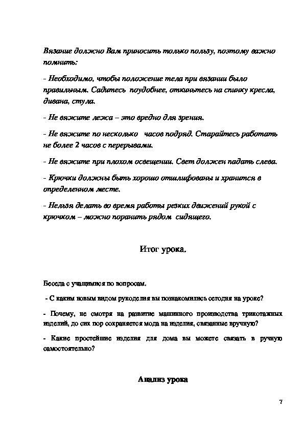 6Вязание должно Вам приносить только пользу, поэтому важно