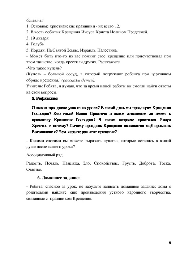 О каком празднике узнали на уроке? В какой день мы празднуем Крещение