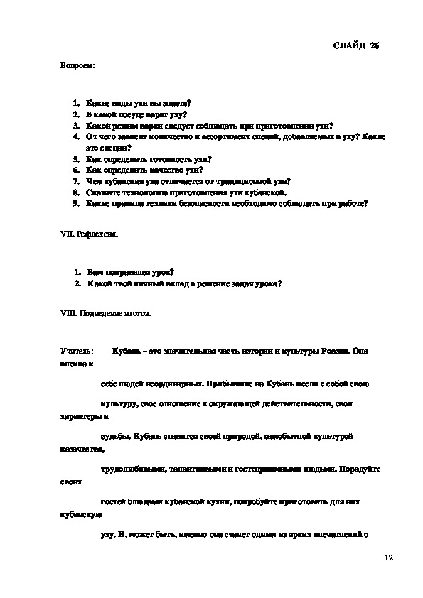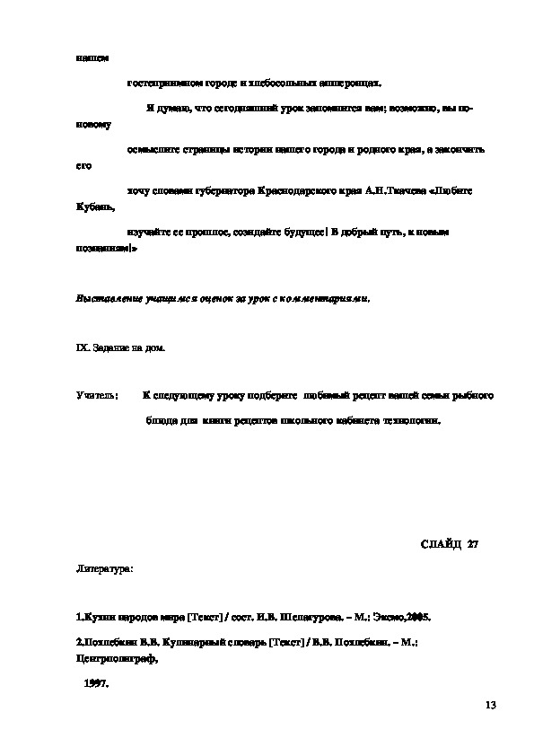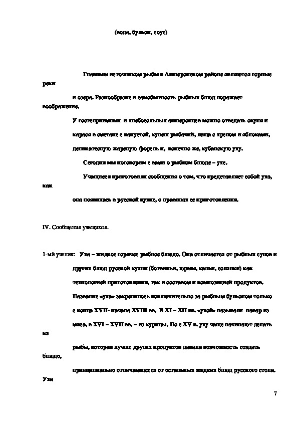 Цели: познакомить учащихся с традиционными на Кубани видами рыбных блюд,