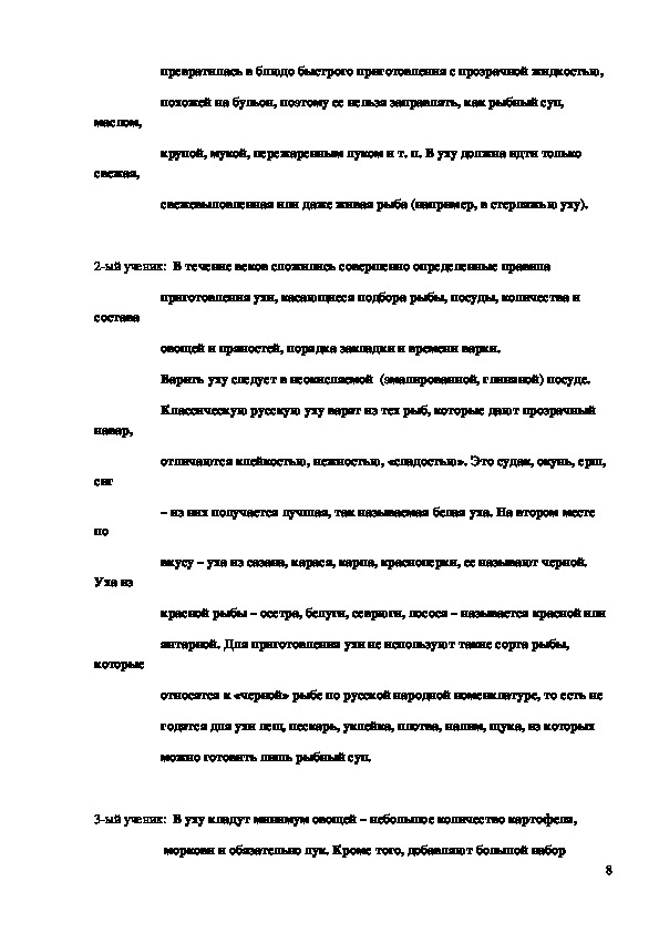 подготовить сообщения по темам: «Уха в русской кухне», «Правила приготовления