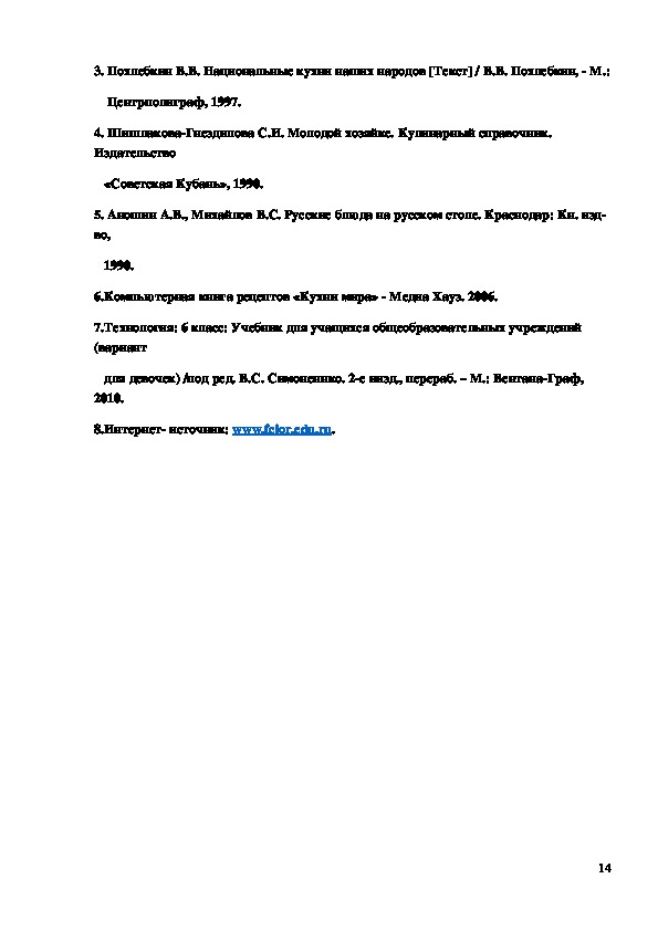 1.Кухни народов мира [Текст] / сост. И.В. Шелагурова. – М.: Эксмо,2005.