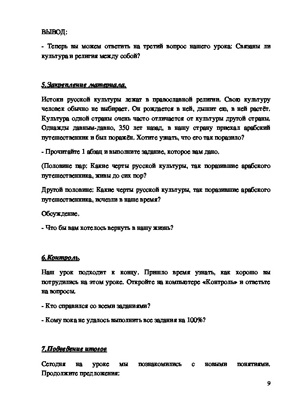 Развивающие: расширение кругозора, умение вести диалог; усвоить, какие вопросы относятся к сфере человеческой культурыконспект