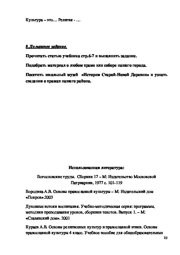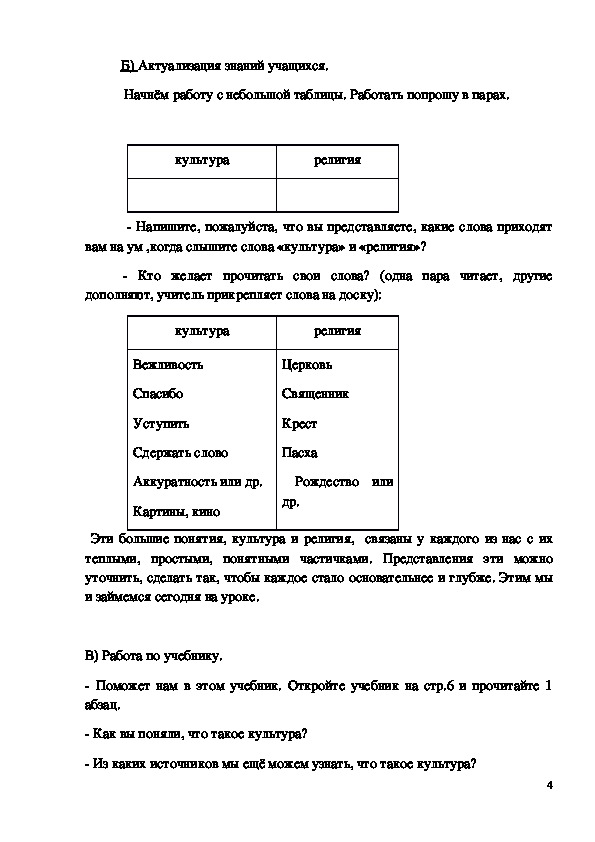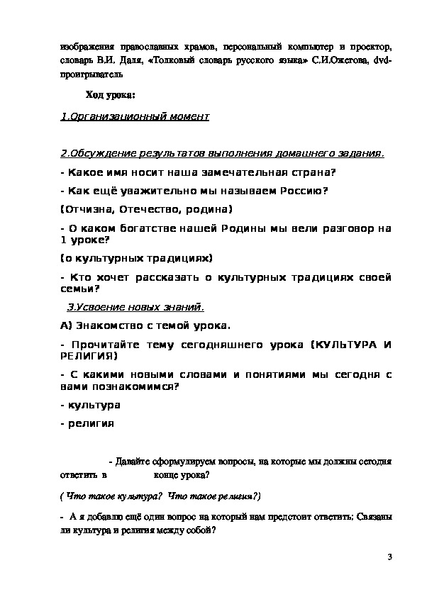 «культура» и «религия», «православие»; помочь сформулировать цель