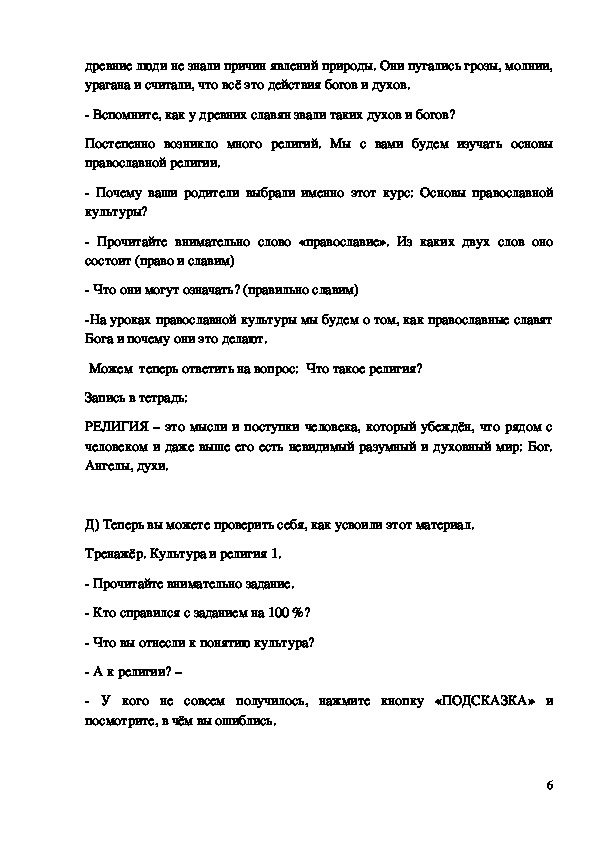 Г) Пришло время более подробно поговорить о религии. Слово «религия»