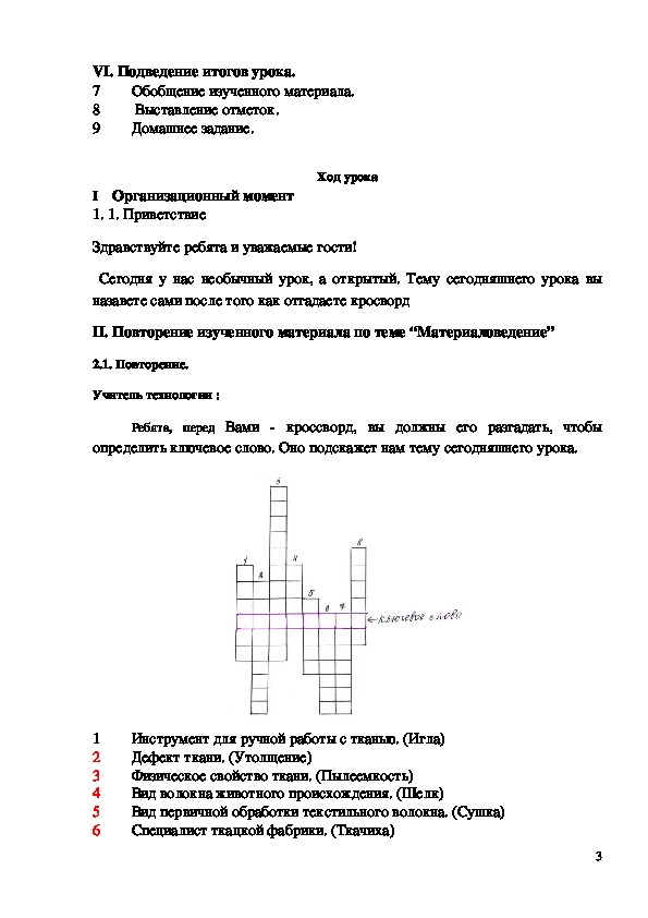 II. Повторение изученного материала по теме “Материаловедение”
