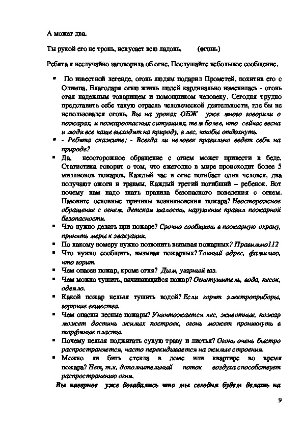 Ребята я неслучайно заговорила об огне. Послушайте небольшое сообщение.