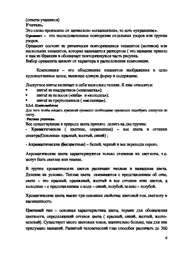 2.3.3. Рассказ учителя технологии об орнаменте.