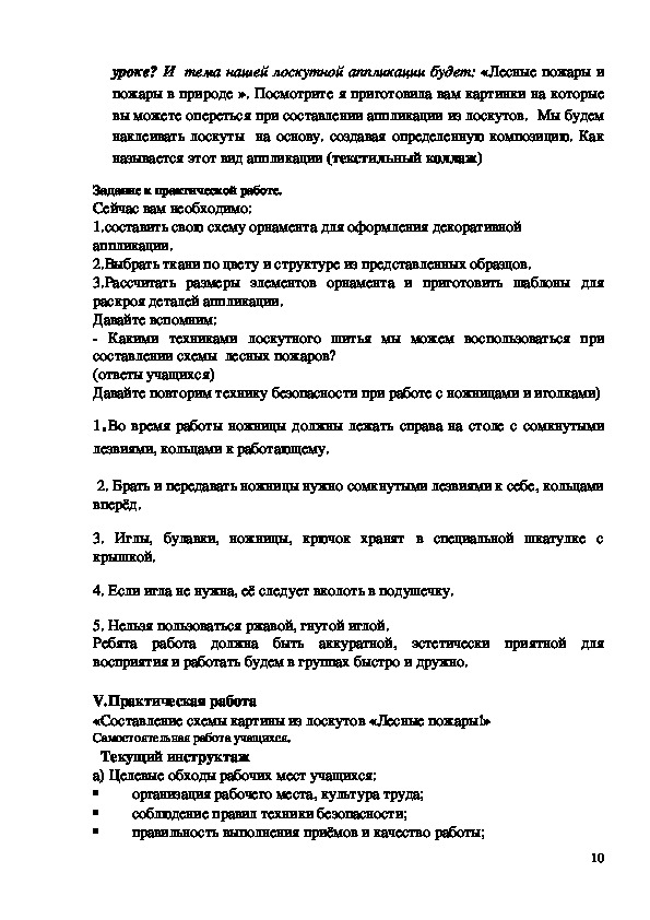 9уроке? И тема нашей лоскутной аппликации будет: «Лесные пожары и