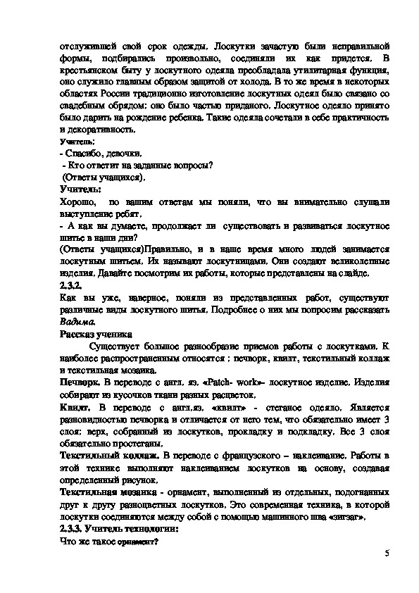 2.3.2. Сообщение учащегося о видах лоскутного шитья сегодня.