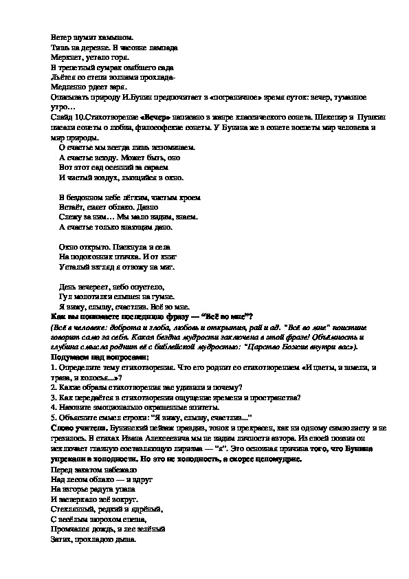 • Какую форму выбирает И. Бунин для своего стихотворения? Как это отражает