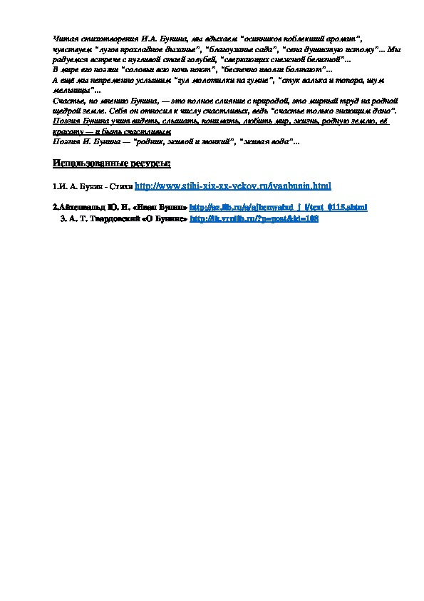 2.Айхенвальд Ю. И. «Иван Бунин» http://az.lib.ru/a/ajhenwalxd_j_i/text_0115.shtml