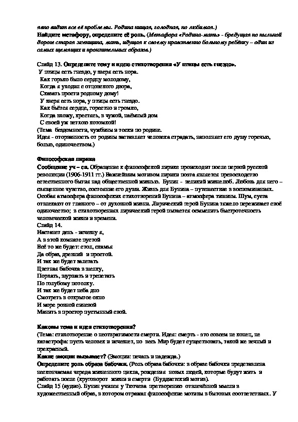 Слайд 22. Закрепление. Определите особенности поэтики стихотворений Бунина.