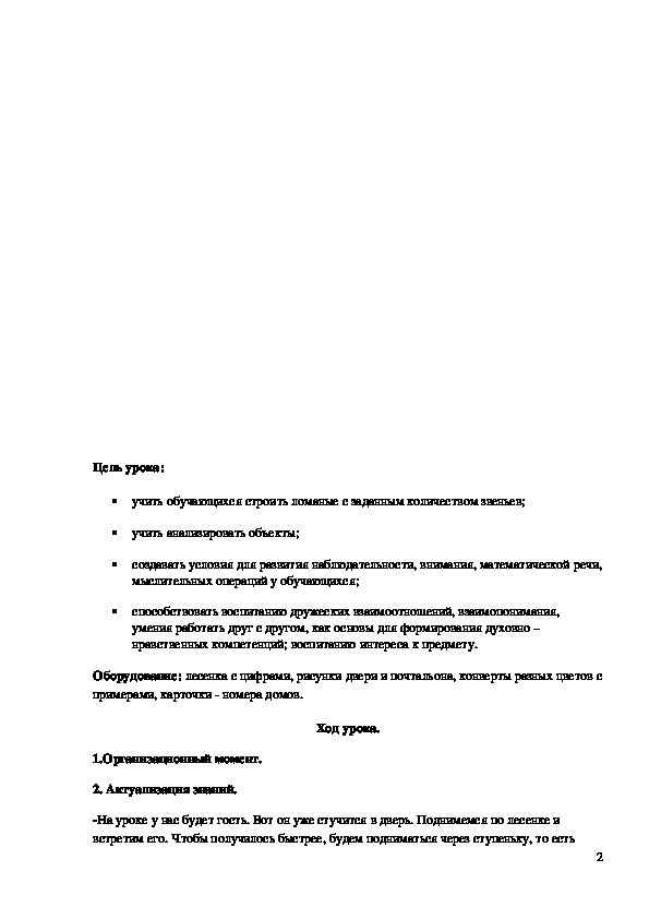 • учить обучающихся строить ломаные с заданным количеством звеньев;