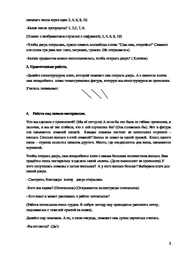 Конспект урока "Ломаная линия. Звено ломаной. Вершины" 1 класс.Конспект урока