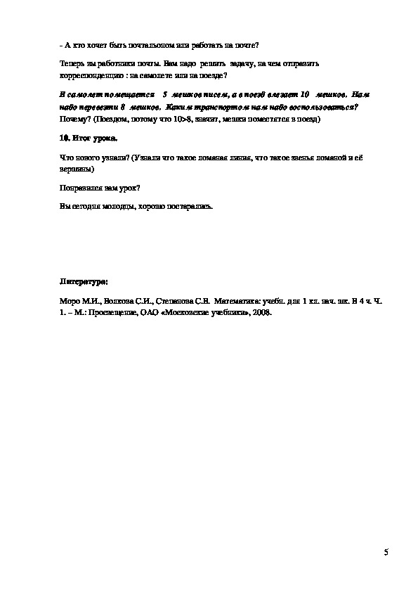 А теперь каждый построит в тетради ломаную, состоящую из такого количества звеньев,