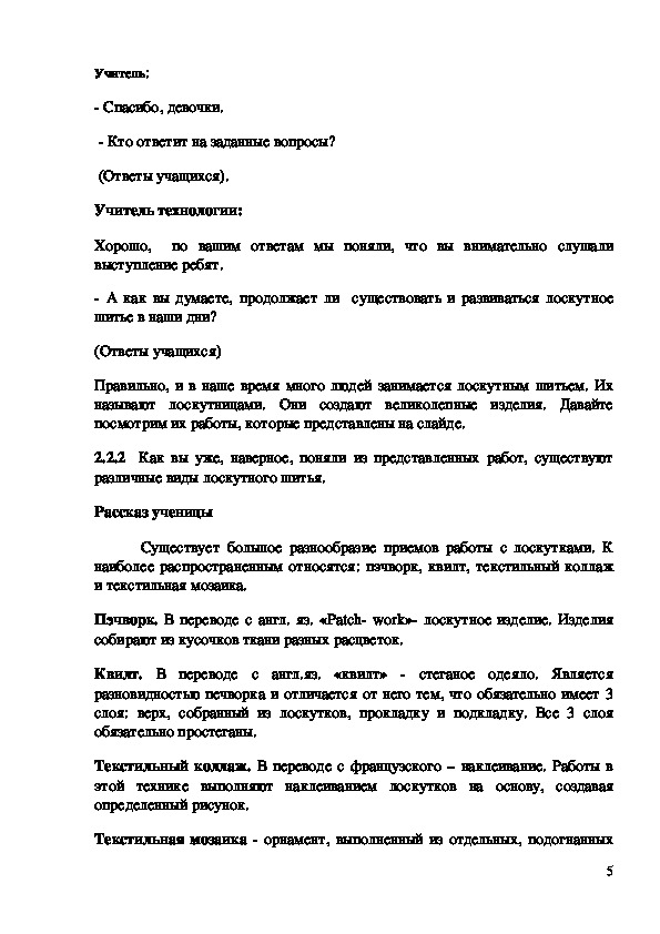 2.2.2. Сообщение учащейся о видах лоскутного шитья сегодня.