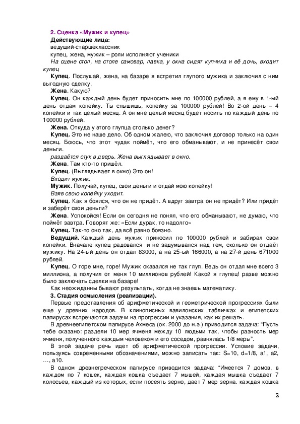 1. Мотивационное начало, вводная часть (исторические сведения о прогрессиях
