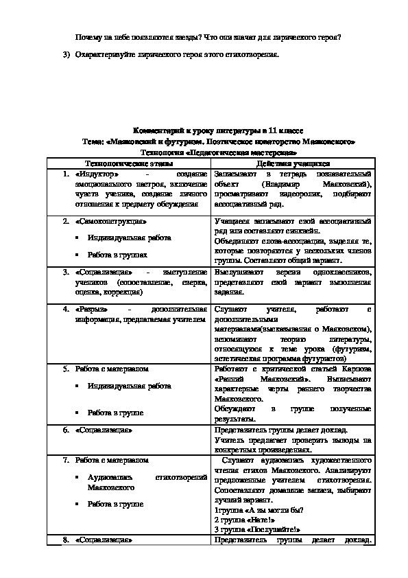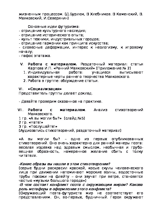 3. Повторить понятие футуризм.Конспект урока "Маяковский и футуризм. Поэтическое новаторство Маяковского" 11 класс