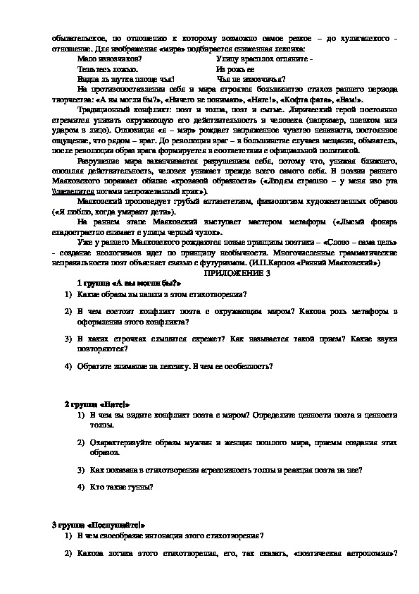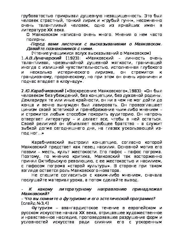 3. Карпов И.П. Ранний Маяковский: Русская литература XXПлан урока: