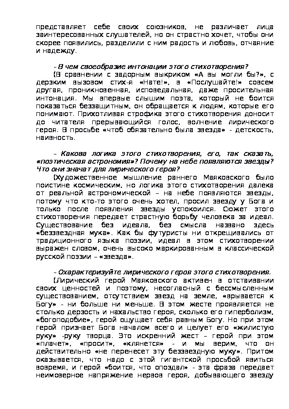 2) Какова логика этого стихотворения, его, так сказать, «поэтическая астрономия»?Почему на небе появляются звезды? Что они значат для лирического героя?
