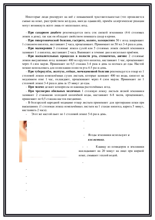 При сахарном диабете рекомендуется пить сок свежей земляники (46 столовых