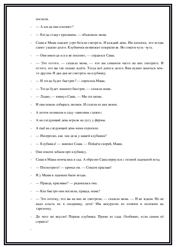 Саша и Маша каждое утро бегали смотреть. И каждый день. Им казалось, что ягоды