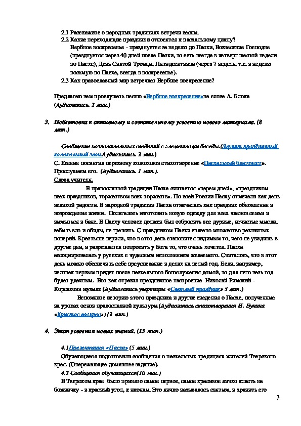 Обучающиеся подготовили сообщения о пасхальных традициях жителей Тверского