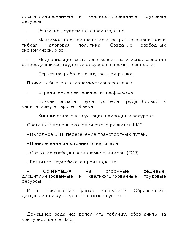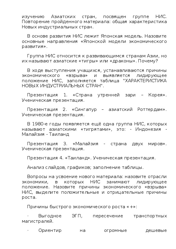 Урок на тему: «Новые индустриальные страны Азии. Экономическая и социальная география мира»
