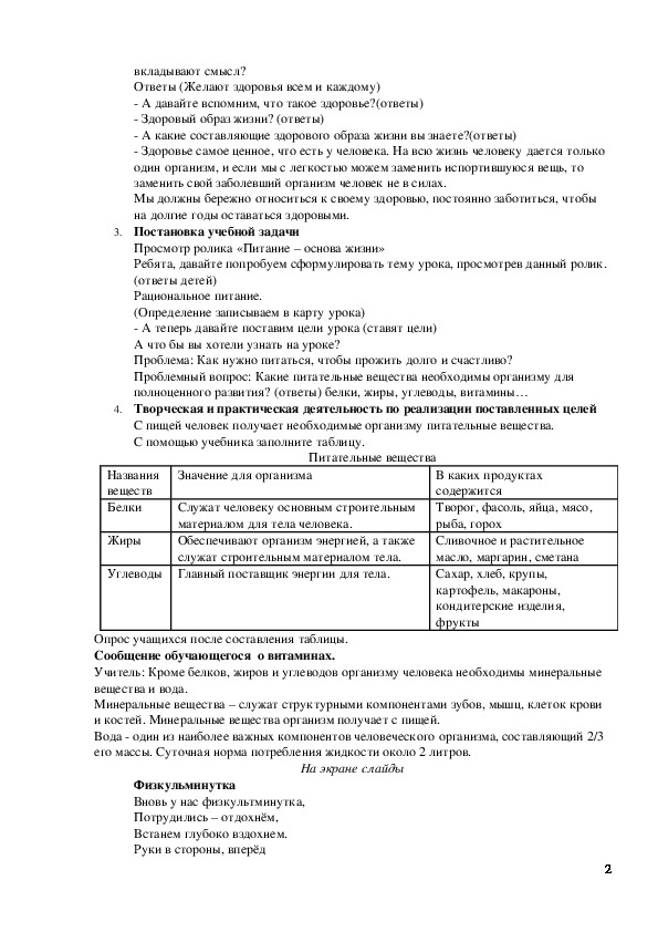 Проблемный вопрос: Какие питательные вещества необходимы организму для