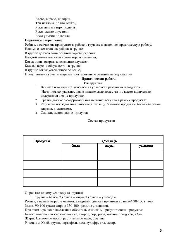 - дать понятие о группах веществ: белки, жиры, углеводы, а так же о витаминах