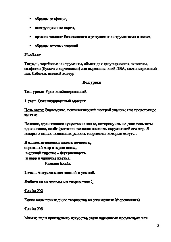 2. 1ый этап: Основные сведения о прикладном творчестве “Декупаж”.