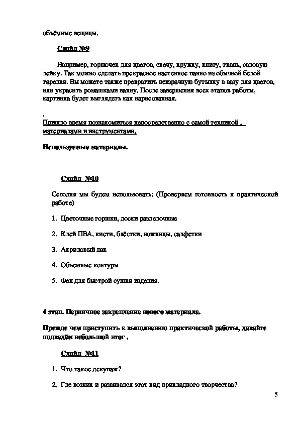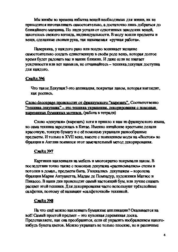 2. 1-ый этап: Основные сведения о прикладном творчестве “Декупаж”.