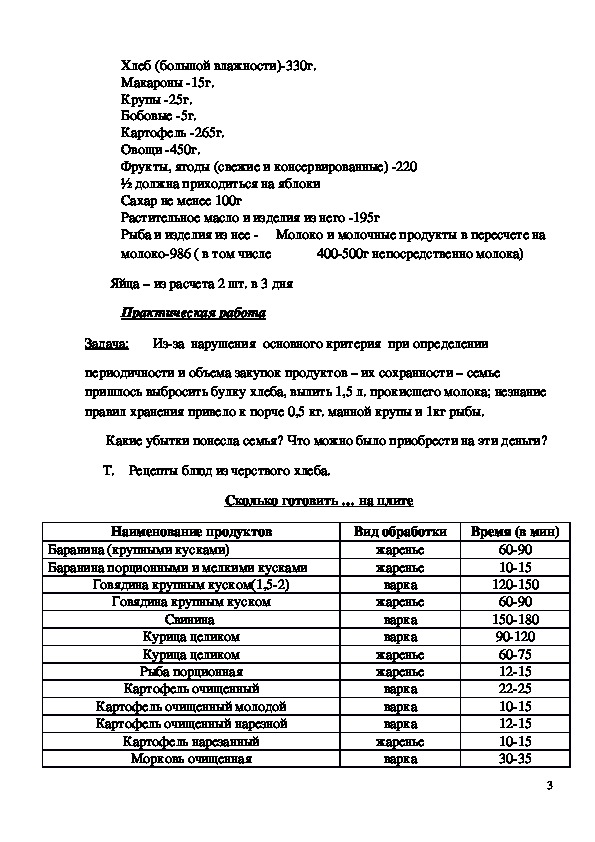 Задачи: ознакомить учащихся с основными принципами экономии продуктов